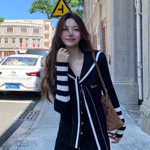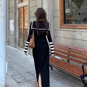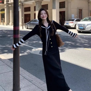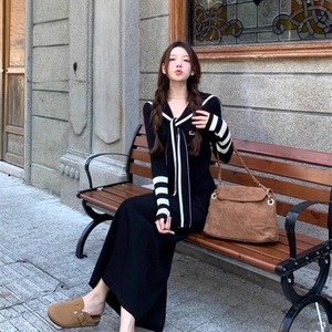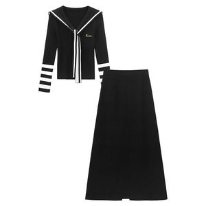韩剧学院风套装女海军领针织毛衣茶系穿搭一整套新款黑色半身裙潮