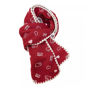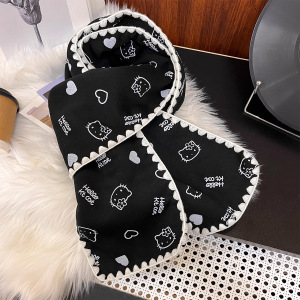 韩版可爱猫咪爱心印花针织围巾女冬季2025新款氛围感保暖护颈围脖