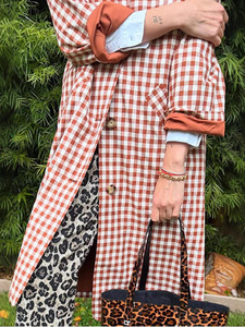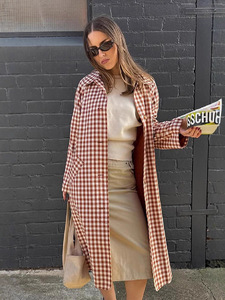 跨境亚马逊2025秋季新款气质复古中长款格纹风衣外套
