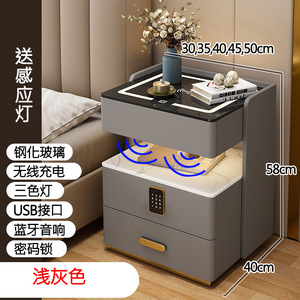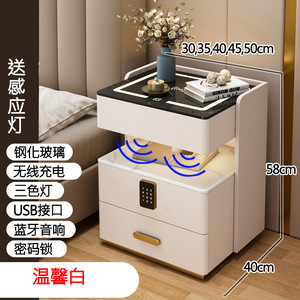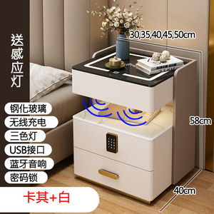 智能床头柜多功能实木轻奢卧室免安装充电储物床边柜