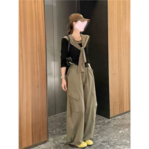 深圳南油早秋穿搭一整套韩系炸街运动休闲超火上衣工装裤两件套女