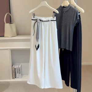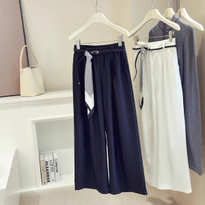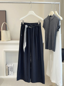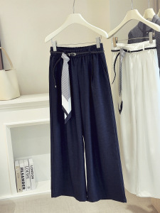 高腰垂感休闲阔腿裤女2025秋季新款宽松显瘦条纹休闲直筒裤A6278