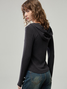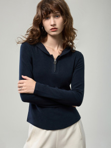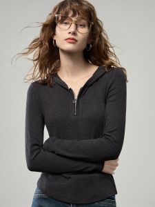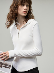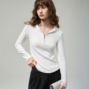 松弛感软糯半拉链帽衫长袖t恤女2025秋季新款修身连帽打底衫上衣