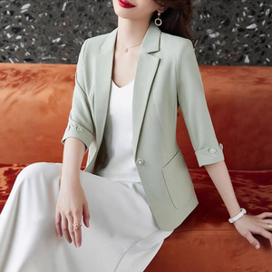 2025新款春秋薄女时尚优雅小西装修身西服短款七分袖气质上衣外套