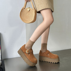 她履真皮复古勃肯鞋女2025秋季新款一脚蹬松糕厚底小个子百搭单鞋