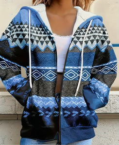 欧美跨境印花3D欧美时尚休闲独立站连秋冬开衫外套女士拉链帽衫运
