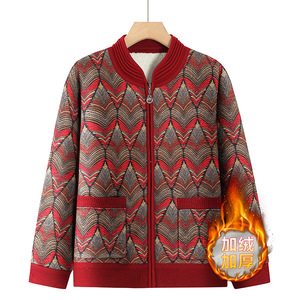 中老年秋冬装毛衣外套女奶奶装针织衫开衫妈妈装加绒加厚保暖上衣