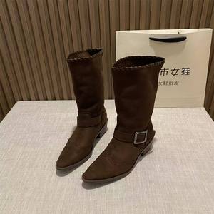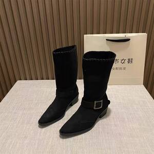 尖头欧美短靴女新款2025秋冬女靴子时装跟高8cm瘦瘦靴小众设计