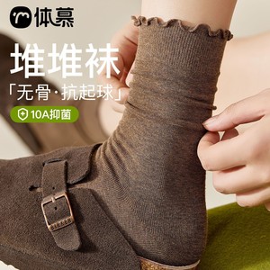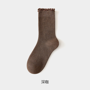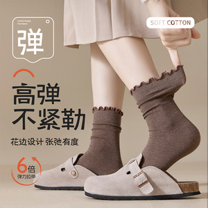 美拉德无骨袜子女士中筒袜秋季木耳边堆堆袜月子袜棉袜花边松口袜