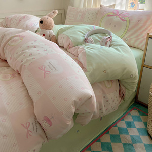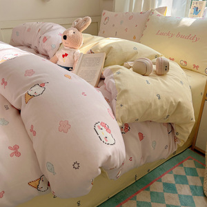 全棉纯棉卡通床上四件套可爱ins少女心学生宿舍三件套被套床单笠