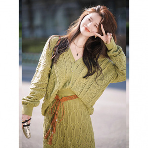 7638自制现货你的名字.套装|针织开衫全棉半裙休闲套装女秋