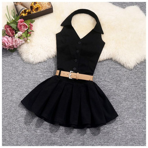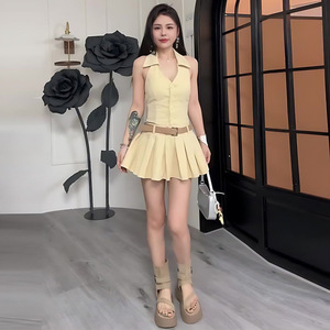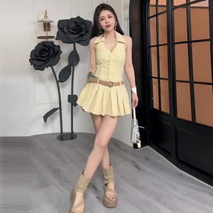 韩系纯欲风辣妹挂脖收腰无袖吊带连衣裙女夏季小众a字背心短裙子