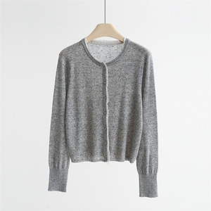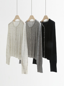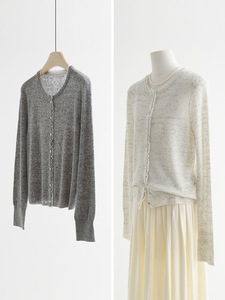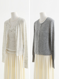 缤纷纱亚麻羊毛 圆领撞色花边假两件针织开衫长袖外套毛衣A65356C