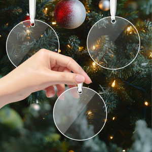透明亚克力圣诞挂件DIY跨境专供空白圣诞树装饰切割圆片挂牌圆盘