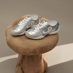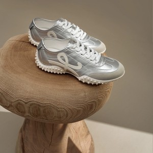内增高德训鞋女2025秋季新款真皮超火银色小个子厚底休闲阿甘鞋