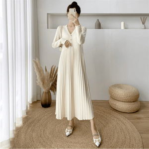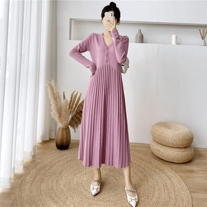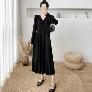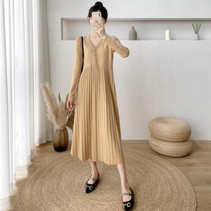 大码裙子长款减龄气质毛衣裙女秋冬经典款极简优雅针织V领连衣裙