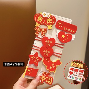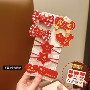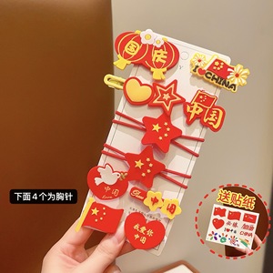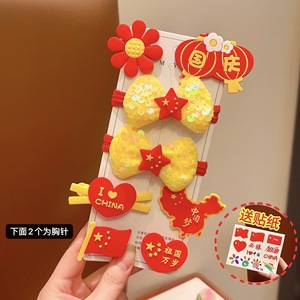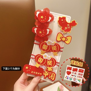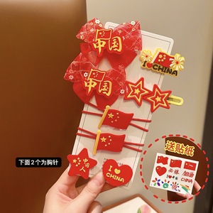 国庆2025贴纸发夹头饰胸针发卡头绳发圈喜庆五星红旗边夹礼物套装