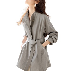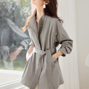 复古简约宽松长袖上衣春秋季新款感休闲小个子中长款风衣
