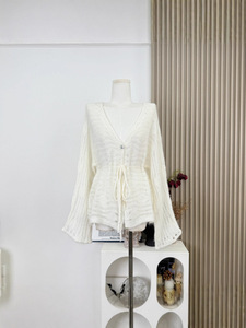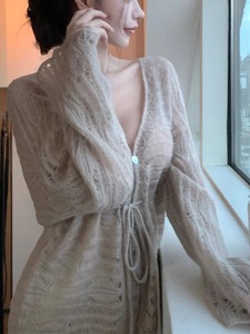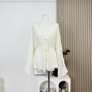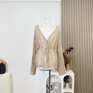 【日光柔纱】马海毛羊毛混纺v领抽绳设计针织开衫外套上衣
