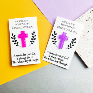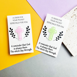 跨境DIY树脂6色亮粉十字架口袋拥抱卡 精神安慰祈祷复活节礼物卡