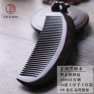 紫光檀木梳子整木黑檀高密度大月长柄梳子女士顺发礼品木梳子刻字