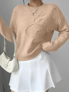 外贸2025秋冬新款时尚优雅百搭休闲花朵圆领针织衫女士毛衣