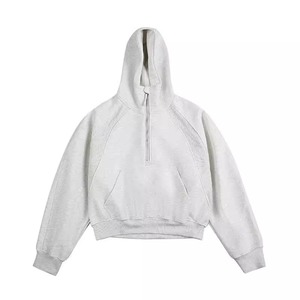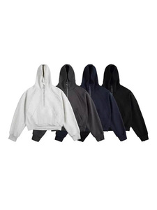 春秋季新款美式重磅连帽套头半拉链卫衣男女宽松情侣百搭纯色外套
