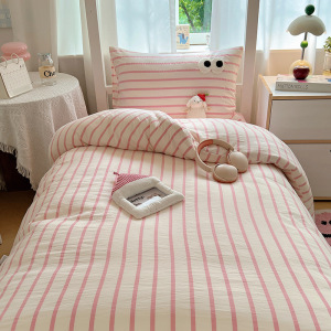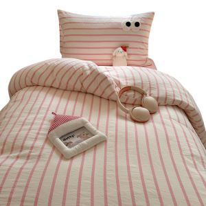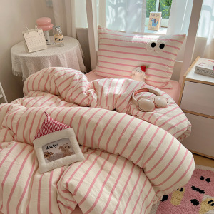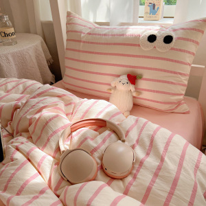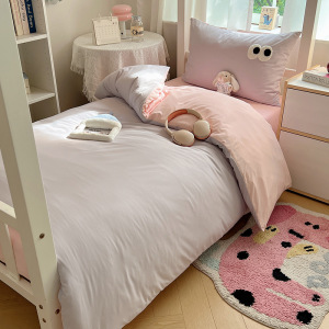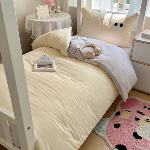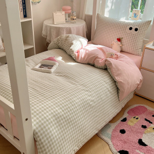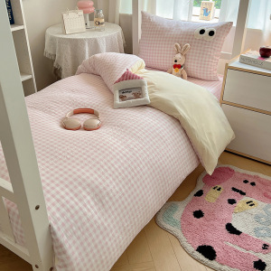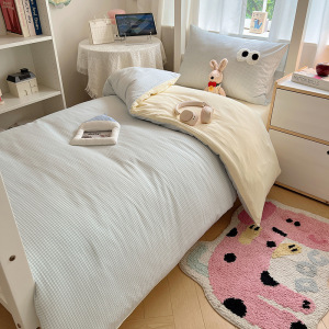 A类亲肤舒适软糯云柔水洗棉大眼睛毛巾绣混搭格子撞色四件套学生