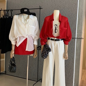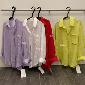 WGWE6774彩虹糖防晒百搭宽松紫色薄款衬衣长袖衬衫