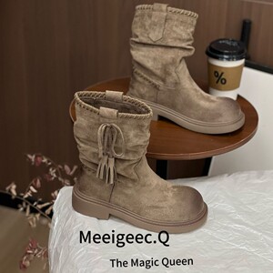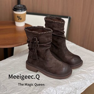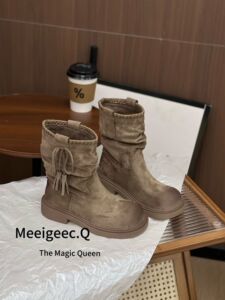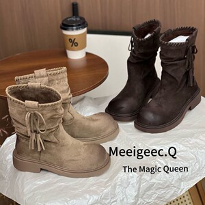 复古圆头系带马丁靴女2025年新款小个子增高加绒加厚保暖防滑棉鞋