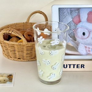 ins风可爱玻璃杯印花新款水杯兔子高颜值大容量牛奶咖啡杯玻璃杯
