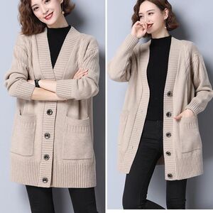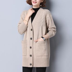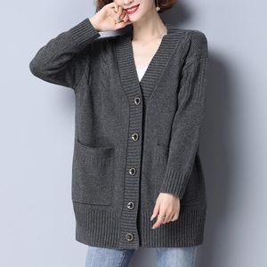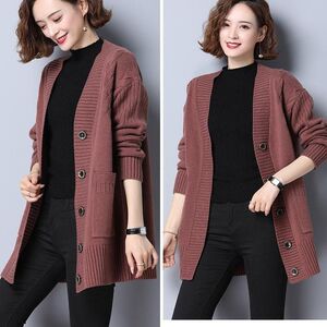 针织开衫女中长款洋气外搭秋冬新款加肥加大胖MM宽松毛衣厚外套女