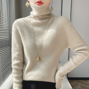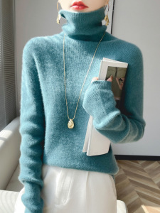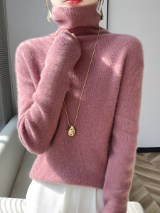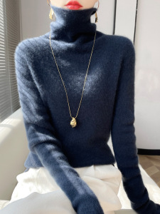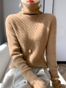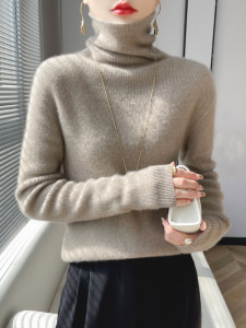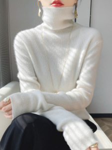 秋冬新款羊毛衫女堆堆领修身毛衣针织加厚羊毛高领纯色打底衫