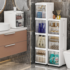 轻奢夹缝收纳柜卫生间多层夹缝柜可移动折叠收纳柜跨境厨房储物柜
