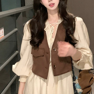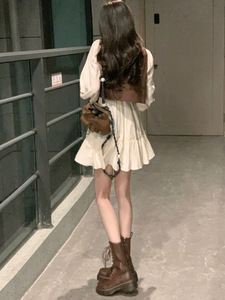 大码甜酷风温柔法式气质感v领边连衣裙马甲两件套装新款