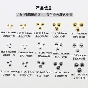 批发金属半圆铆钉美甲饰品平底实心半球钢珠金银色指甲配饰
