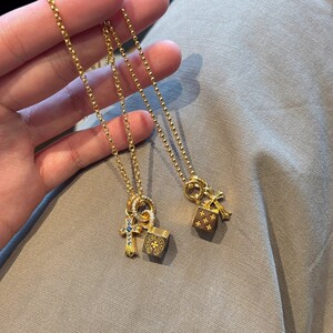版型超正!中古跑环十字架实心骰子吊坠项链轻奢设计感毛衣链饰品