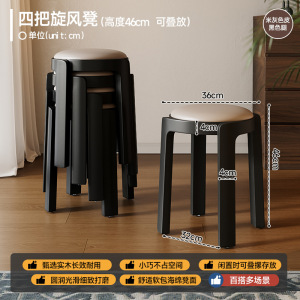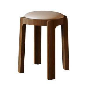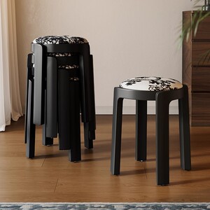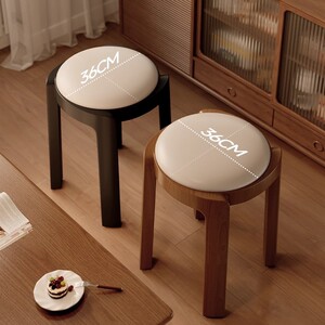 实木凳子可叠放餐椅家用椅子法式中古餐凳复古圆凳备用餐桌椅板凳