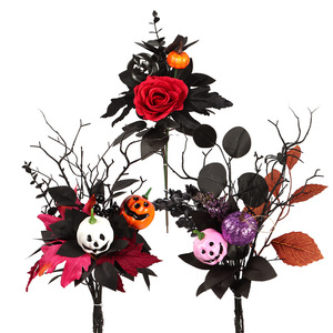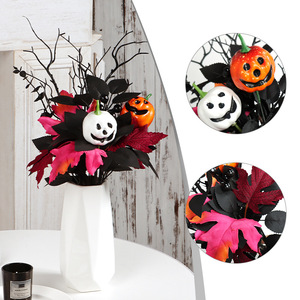 万圣节南瓜把束仿真黑色枫叶枯枝搞怪家庭派对节日气氛人造插枝