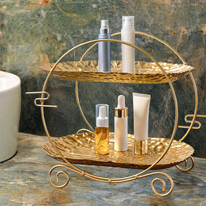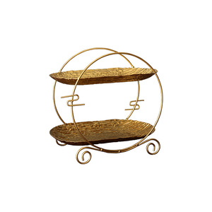 跨境欧式金属双层架金色摆件酒店户外下午茶点心摆盘餐厅宴会托盘