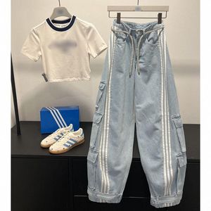 2025美式工装牛仔裤宽松休闲新款运动口袋高腰筒裤复古街头长裤