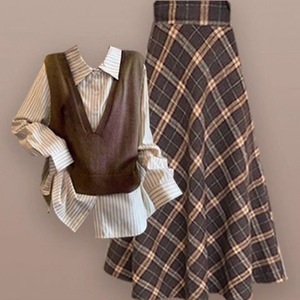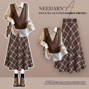 秋系miu系女装美拉德复古风格子连衣裙2025新款初秋穿搭一整套装