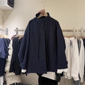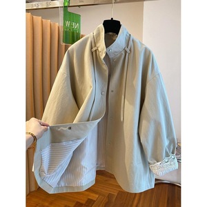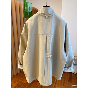 韩国立领风衣外套女春秋新款宽松休闲蕾丝袖口中长款夹克大衣