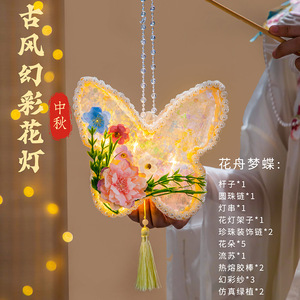 中秋灯笼古风发光手提花灯蝴蝶手工diy材料包国风幻彩灯笼挂饰