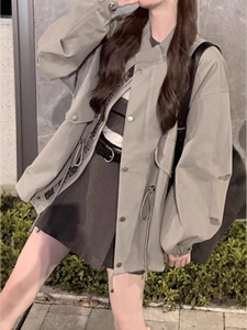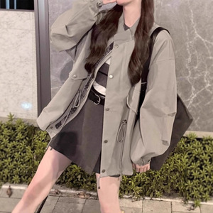 韩系设计感小众温柔早秋新款高级宽松廓型抽绳收腰风衣外套女上衣