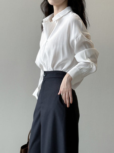 言双 法式设计感套头衬衫女 秋季新款气质垂感宽松通勤上衣82571