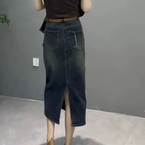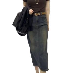 梨形身材微胖穿搭大码女装牛仔半身裙子2025年秋冬新款开叉包臀裙