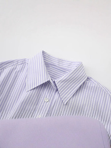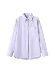 MO**2025秋款女装宽松休闲百搭字母刺绣竖条纹长袖衬衫MBE3SHT002