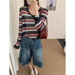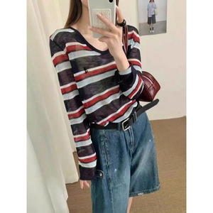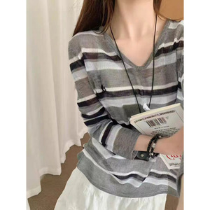欧货时尚天丝亚麻条纹慵懒长袖薄款防晒衣女早秋宽松洋气罩衫上衣