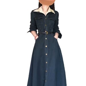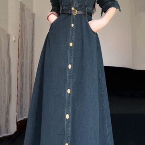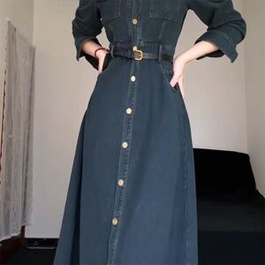 早秋法式复古牛仔连衣裙女春秋2025新款高级感气质显瘦高个子长裙